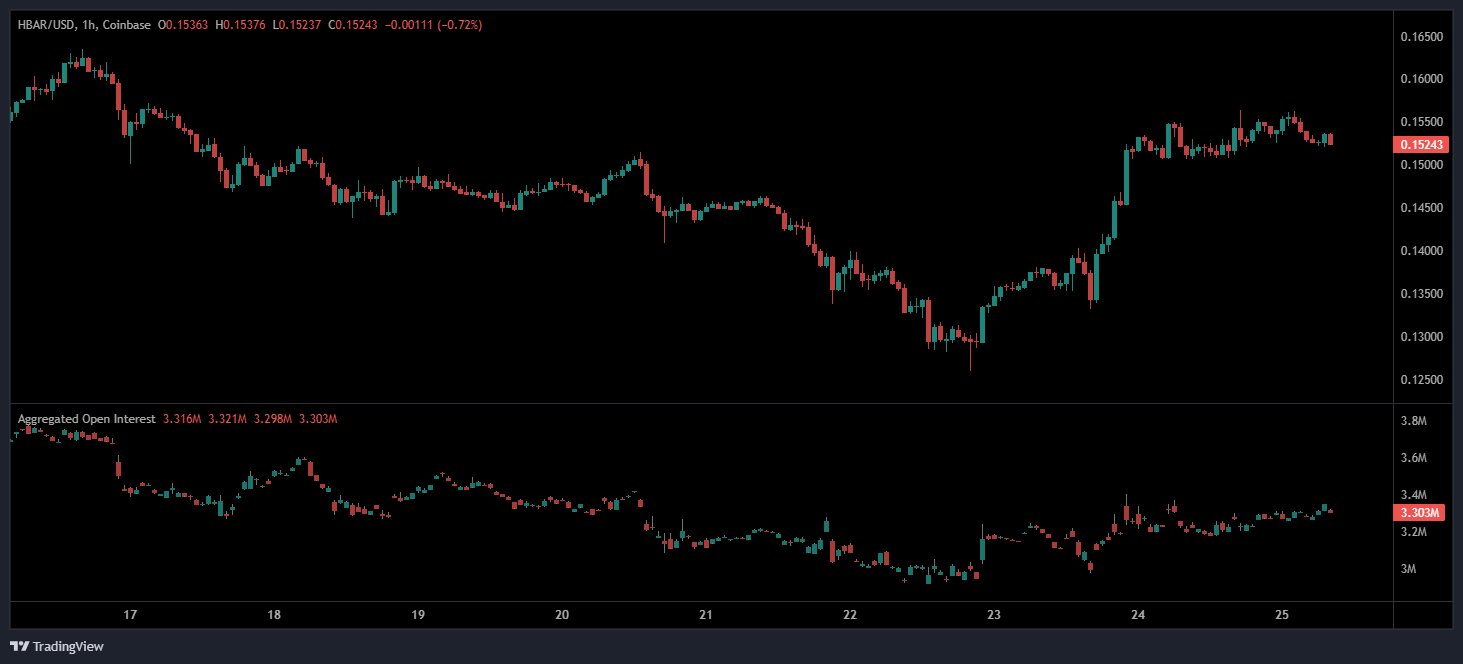 The aggregated open interest (OI) in HBAR Price Prediction futures provides a view into market sentiment and participation. During the mid-June downtrend, OI decreased alongside falling prices, indicating that traders were closing positions amid uncertainty.
